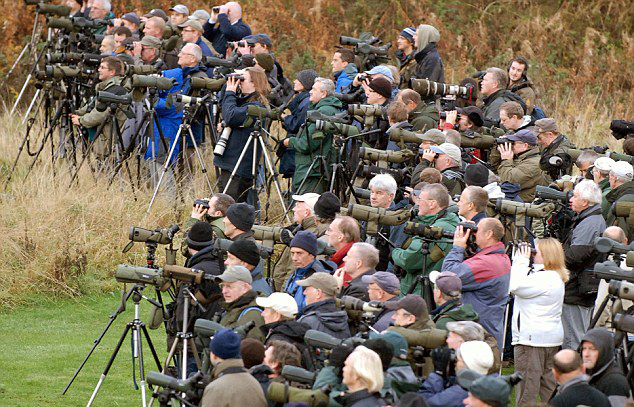 V Angliji je opazovanje ptic dosti bolj množičen pojav in vojska do zob oboroženih ptičarjev ni prav posebna redkost. V primerih opazovanja kakšne izjemne redkosti pa vse skupaj zgleda že kar strašljivo.